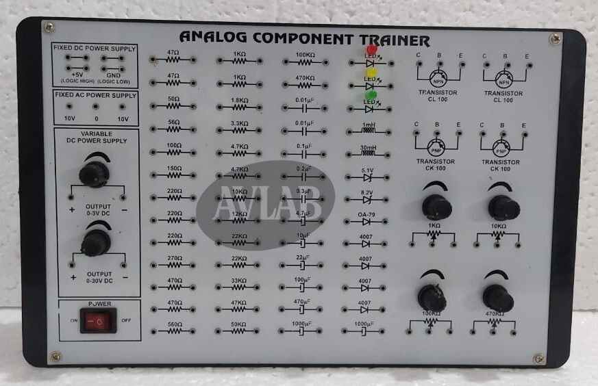 Analog Component Trainer is used to perform analog circuit experiments .It very useful in Analog laboratories for performing analog experiment in colleges and universities. It also useful intesting circuit and making projects related to analog electronics.