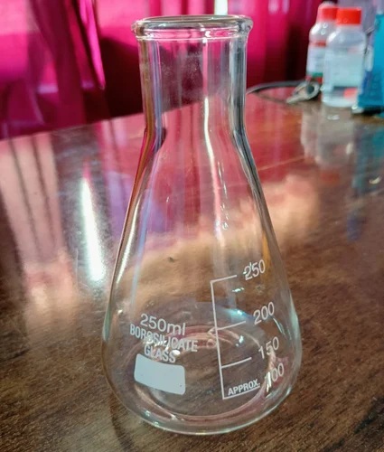 Conical flasks are widely used in chemistry laboratories for holding liquids and mixing them by swirling. A conical flask is a container typically made of glass, often with graduated markings.