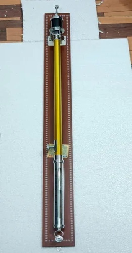 Fortin’s barometer is a laboratory instrument used to measure atmospheric pressure. It consists of a glass tube with a reservoir at the bottom and a vacuum at the top, which is closed with a brass screw.