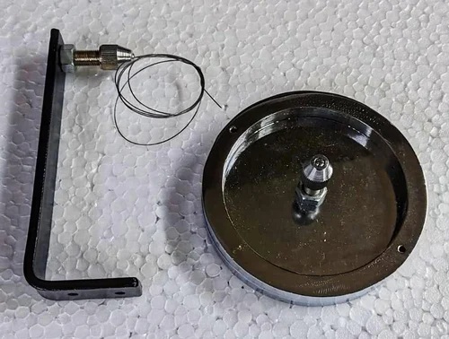 Torsion Pendulum (5″ Brass Disc) The torsion pendulum is an interesting example of simple harmonic motion, often overlooked by students. It is helpful in explaining the meaning of moment of inertia and moment of torsion and how they affect the period of vibration. The one end of suspension wire hangs from a Universal Clamp with the help of a chuck nut and the other end is clamped to a solid brass disc of 12.5cm dia and 1.25cm thick with the help of a chuck nut. A heavy metal ring of the same metal (brass) and the same outside diameter as the disc is included. When ring is placed on the disc, the moment of inertia, and therefore the period of vibration of the system, is Increased.